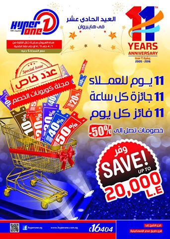 ننشر لكم اليوم اقوى عروض هايبر وان بمنسابة عيد ميلادة الحادى عشر ، تستمر مفاجات وعروض هايبر 2016 ، نقدمها لكم حصريا عبر موقع اخبار اليوم ، تابعونا مع عروض هايبر بمناسبة شم النسيم حصريا ، اقوى عروض هايبر وان ، وتخفيضات هايبر على عشرات المنتجات الرائعة ، تابعونا لتتعر فوا على كل ما هو جديد في عالم التخفيضات والعروض ، ان هايبر هو المتجر الاشهر في مصر والذي يحصر دائما في كل فروعة في جمهورية مصر العربية على تقديم العروض والمفاجات لينال اعداب وحب الكثيرين من مصر .